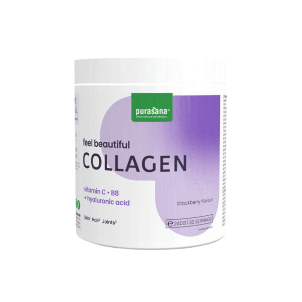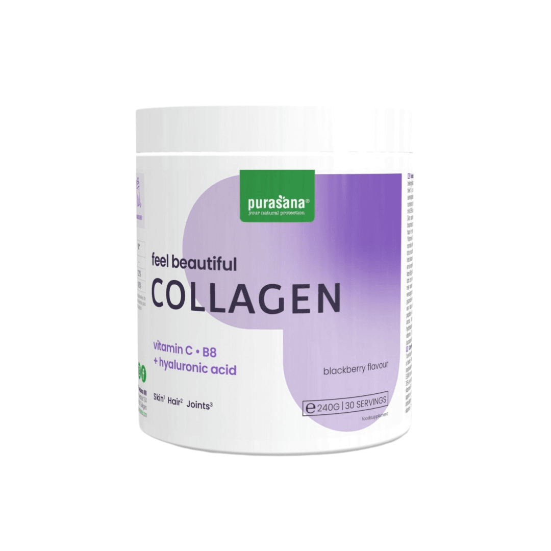 Purasana Feel Beautiful Beauty Collagen est un complément alimentaire premium, spécialement formulé pour soutenir la beauté de la peau, des cheveux et des ongles de l’intérieur. Riche en collagène marin hydrolysé, en acide hyaluronique, zinc, biotine, vitamine C et sélénium, cette formule complète favorise l’élasticité de la peau, réduit l’apparence des rides et stimule la synthèse naturelle de collagène.